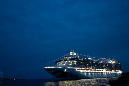 We missed the sunset because we were walking back to the port but enjoyed a nice tender ride back to the ship, which was lit up for the evening. We quickly changed and went to dinner and oddly enough, were seated with the same people we sat with on the tender ride.