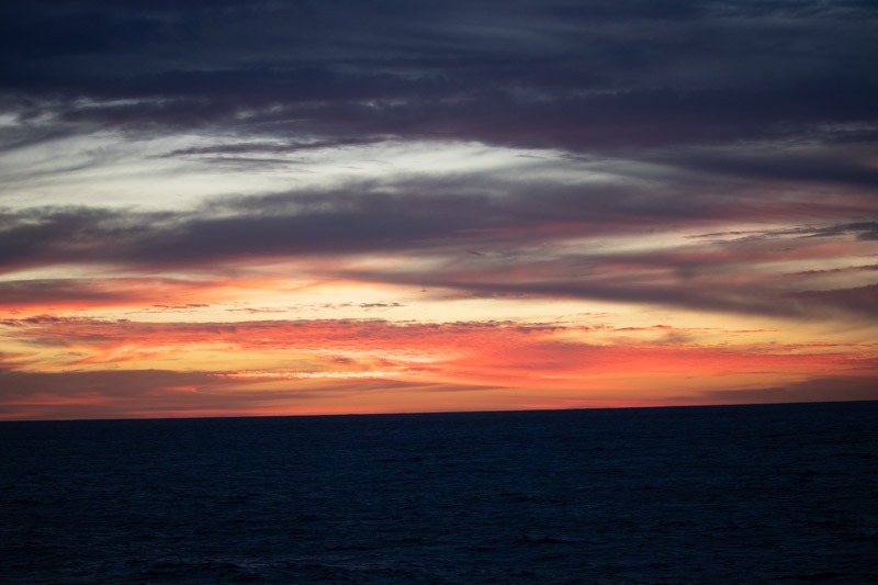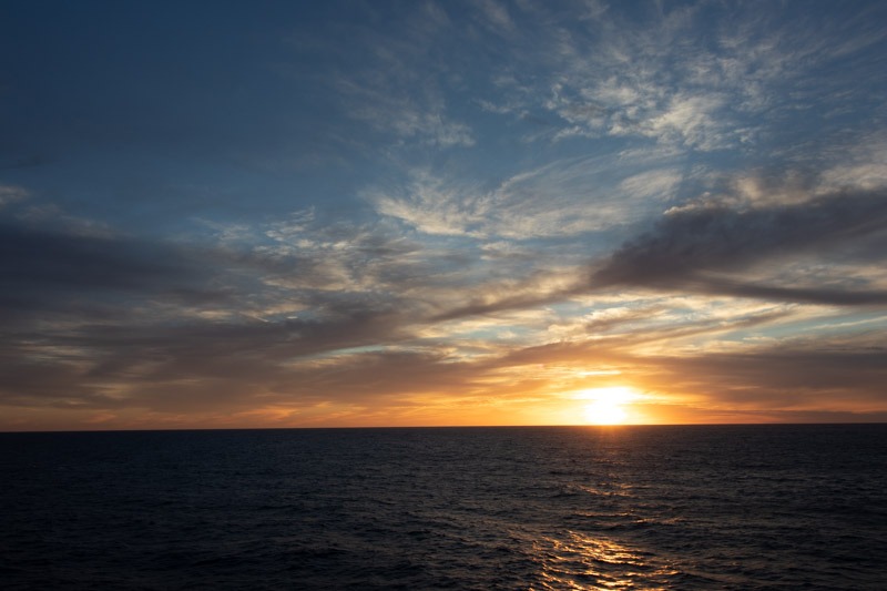 As we were backing up from the terminal, we saw a dolphin. Within 20 minutes and before even leaving the bay, we saw a whale. It was a good indication of the marine life we would see over the next ten days. We enjoyed our first sunset of the cruise and then headed out to dinner (Anytime Dining).